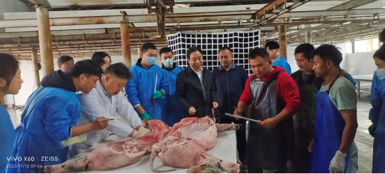 2023年11月18日,在澜沧旺丰屠宰场现场观摩了试验猪屠宰测定后,专家论证会在澜沧拉祜族自治县政府会议室召开。会议邀请了国家畜禽遗传资源委员会委员殷宗俊教授、梅书棋研究员、李新建教授等相关专家,中国工程院院士印遇龙及团队、澜沧县委常委副县长黄永及职能部门相关人员、湘潭市农业农村局吴买生研究员、云南循环农业产业研究院相关人员、德赢AC米兰官网特聘教授张勤、院长贺喜、副院长何俊以及陈斌、谭碧娥、马海明、贺长青等专家教授参与了本次会议。