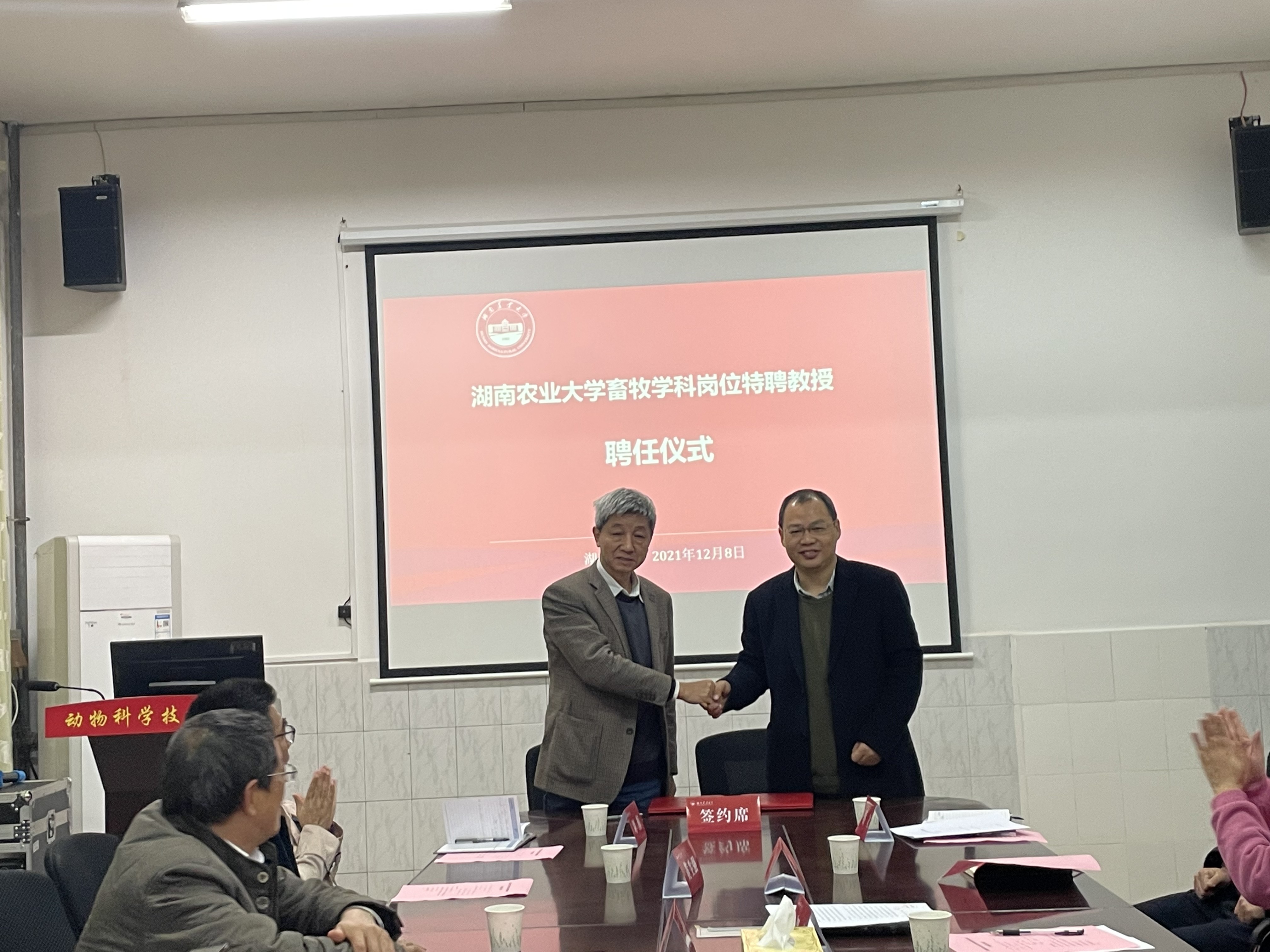 伍小松处长发言表示,动物遗传育种迎来了前所未有的发展机遇期,但是学校动物遗传育种的人才力量还不够强大,希望张勤教授围绕凝练学科发展方向、抓好动物遗传育种团队建设、聚集各级资源、服务畜禽产业几个方面发挥作用,做大做强学校动物遗传育种团队,特别是在湖南生猪种业发展中取得更大突破,助推湖南生猪千亿产业的发展。