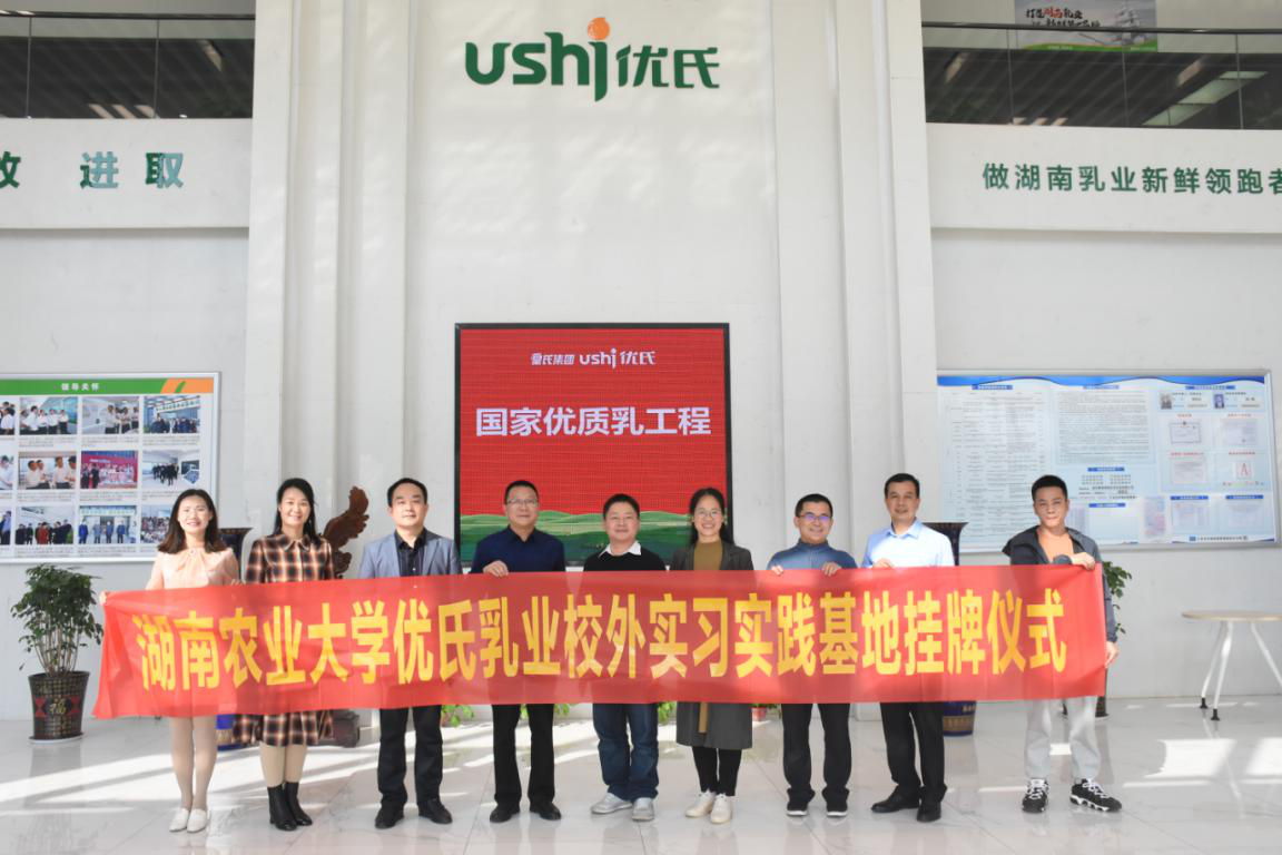 3月11日下午,我校与皇氏集团湖南优氏乳业有限公司(下称优氏乳业)共建“优氏乳业校外实习实践基地”授牌仪式在长沙市宁乡经开区皇氏集团优氏乳业工业园举行。该基地建成不仅得到了德赢vwin官方入口和皇氏集团优氏乳业领导大力支持,还得到了国家乳业创新联盟和湖南省奶业协会的指导。国家乳业创新联盟张养东秘书长、湖南省奶业协会刘海林秘书长、德赢AC米兰官网何俊副院长和皇氏集团优氏乳业肖松义总经理等出席了授牌仪式。