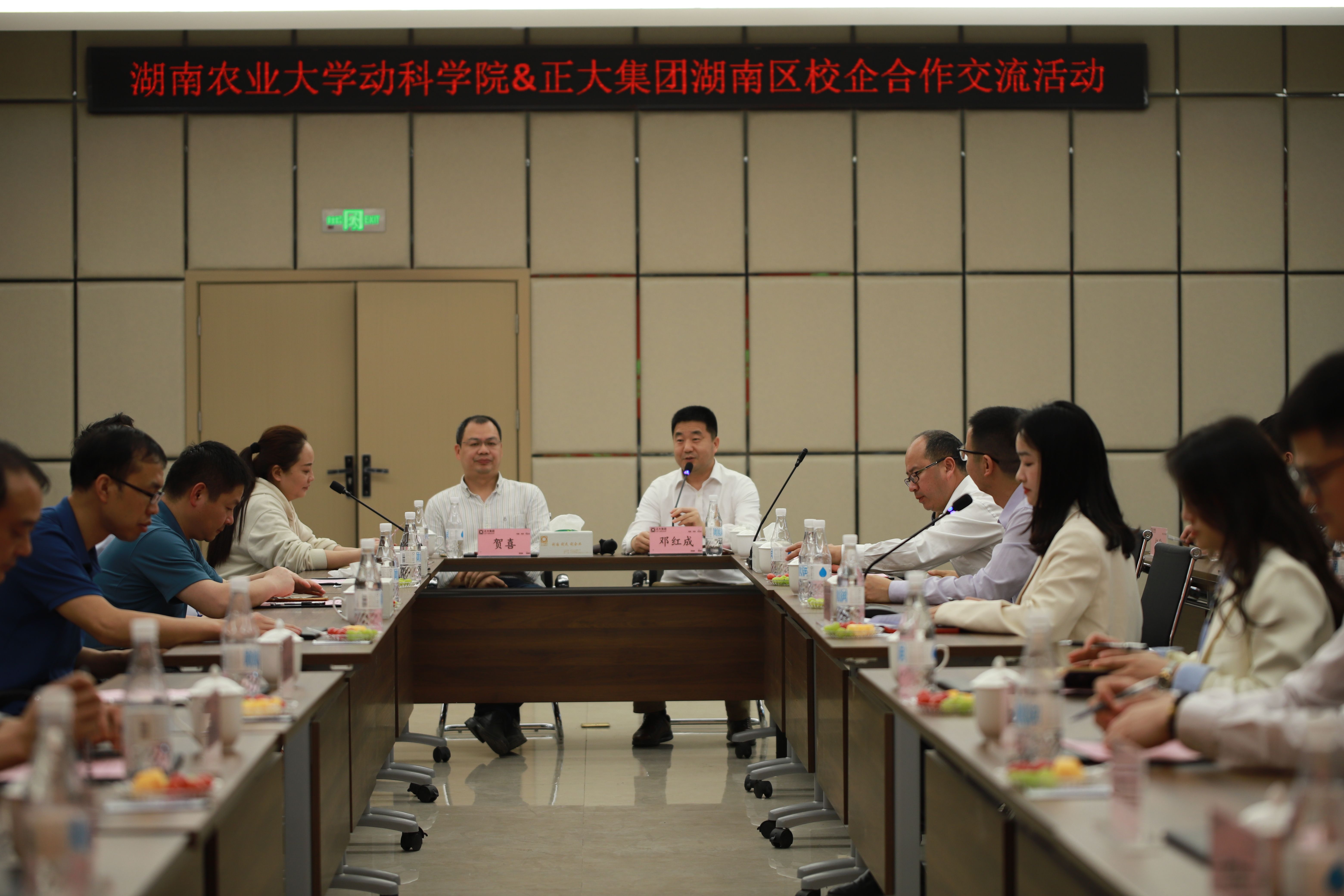 在交流座谈会上,邓红成资深总裁对湖南农大动科学院师生的到来表示热烈欢迎,感谢德赢vwin官方入口各级领导、老师历年来的大力支持,为正大培养输送了大量优秀的人才,并对正大集团在湖南的业务布局、发展规划以及行业现状进行了详细介绍。接下来,校企双方要拓展合作的深度与广度,进行深层次、多角度的紧密交流,推动双方事业快速发展。