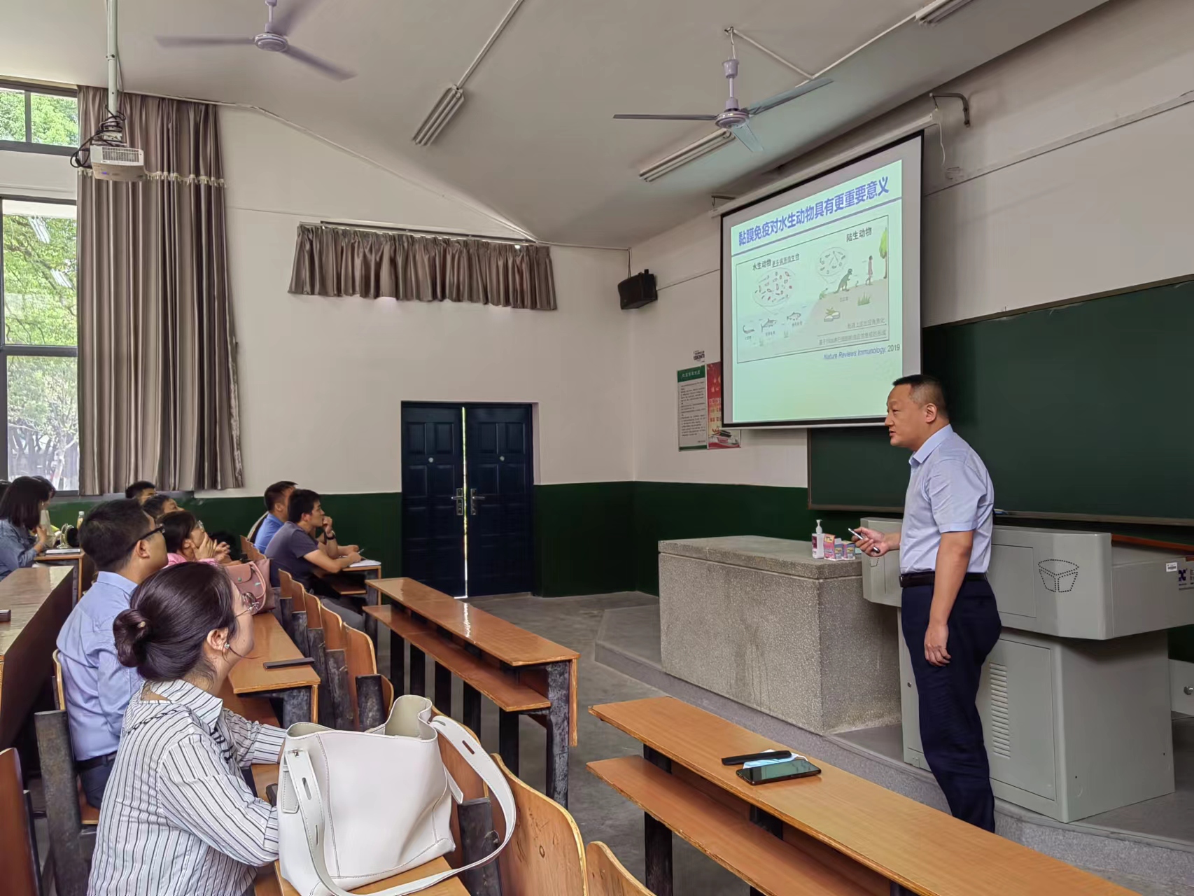 2022年9月24日,国家杰出青年基金获得者、中国科学院水生生物研究所研究员、博士生导师徐镇教授应学院邀请,在动科院老T5教室作了题为“病毒诱导的鱼类黏膜免疫应答机制”的专题学术报告。报告会由李德亮教授主持,学院师生100余人参加了此次学术报告。