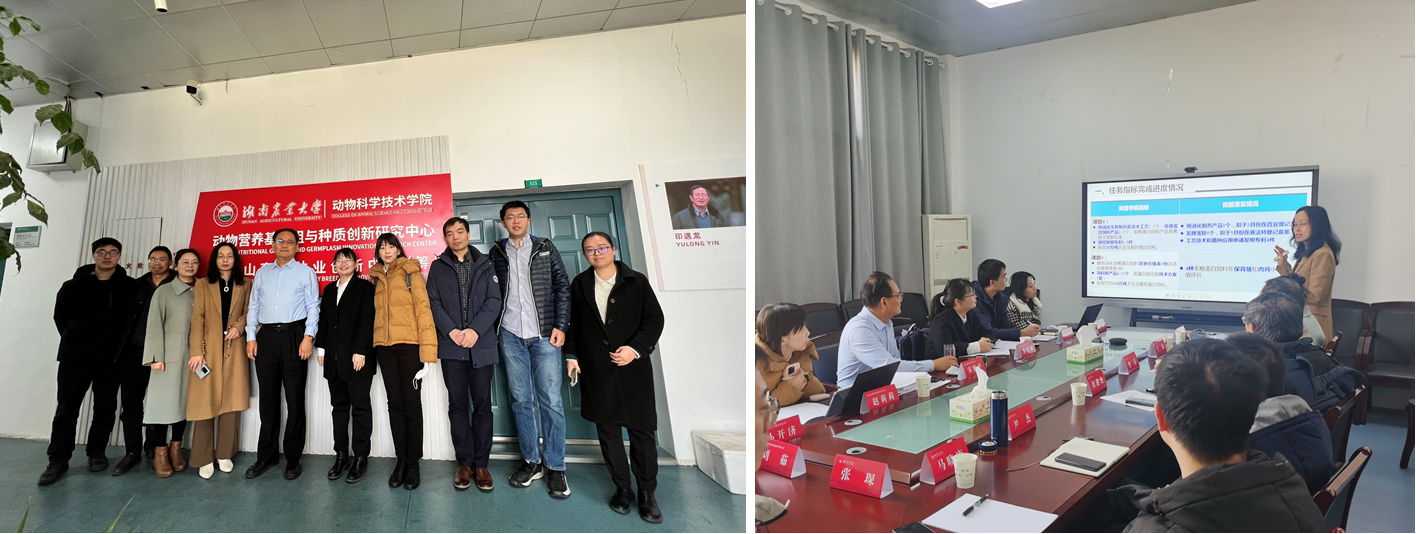 “蛋白饲料生物工程制造前沿技术及新产品创制”项目是由大北农集团牵头承担的十四五国家重点研发计划“揭榜挂帅”项目,我校作为项目的课题承担单位,参与“非粮蛋白饲料提质增效关键技术及产品创制”、“预消化非粮蛋白饲料在猪和肉鸡中的营养价值评定”两项子课题。谭碧娥教授作为课题负责人从任务完成进度、里程碑成果、经费执行情况等进行了汇报,并对任务完成过程中的问题和经验进行了沟通和分享,谭教授指出蔬菜尾菜、棉粕等作为潜在的替代产品具有极高的应用价值,同时她强调虽然将游离棉酚转换成结合棉酚可使棉粕达到饲用棉粕的安全标准,但结合棉酚也存在毒理安全隐患,应纳入饲料安全的考虑范围。期间,宋维平总裁一行与贺喜院长、印遇龙院士及课题骨干就“实现饲料原料高效处理利用,推动豆粕减量替代,蛋白饲料减替”进行了深入的交流,宋维平总裁对我单位工作的完成进度、完成质量表示充分地肯定;印遇龙院士对发酵大米、黑水虻虫体蛋白等蛋白资源进行了介绍,拓宽了非粮蛋白饲料原料资源;贺喜院长指出蛋白饲料生物制造创新联合体的成立,有助于我校与企业间的联合技术攻关,是推动成果交易与转化、校企合作的一大创新机制。