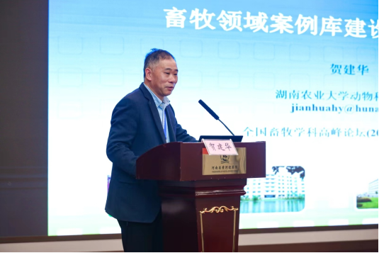 本次学术论坛聚焦贯彻落实党的二十大精神,深入学习贯彻全国教育工作会议精神,就新时代畜牧学科高层次专业人才培养、学科内涵与一流专业建设、研究生导师队伍建设、科教融汇、产教融合、产科教联动发展、一流课程建设、学生思政教育等方面开展研讨,积极推进“十四五”畜牧学科与专业发展,认真研讨新时代畜牧业人才需求,进一步提升畜牧学科专业人才培养质量、科学研究和社会服务能力。学院印遇龙院士和贺建华教授应邀在大会上做主题报告,印遇龙院士以“国际动物科学现状与动态及养殖技术前沿”为题,分享了国际和国内最新的绿色养殖、饲料资源开发、粪污处理等前沿技术。贺建华教授以“畜牧领域案例库建设情况汇报”为题,从专业学位研究生教育改革 、教师队伍建设、课程教学改革、学位论文指导、专业人才培养等方面分享了自己从教三十余年的经验与见解,并结合主编的普通高等教育农业农村部“十三五”规划教材《现代畜牧业案例分析》一书,分享了书中收录的案例基本情况、案例教学运用情况及相关工作建议,获得与会专家的高度赞赏。