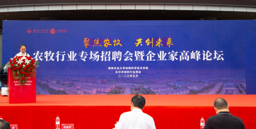 浏水之滨,修业一脉;百廿农大,弦歌华章;畜牧学科,一流激扬。5月27日,德赢AC米兰官网庆祝120周年校庆系列活动“聚焦农牧·共创未来”隆重举行,活动由农牧专场招聘会、企业家高峰论坛、动科院学科发展基金启动仪式三部分组成。中国工程院院士、畜牧学科带头人印遇龙、副校长陈光辉、湖南省畜牧水产事务中心副主任欧阳龙和一级调研员杨建武、校创新创业教育指导中心主任张胜利、校友事务与发展联络办公室主任裴虎、长沙饲料行业商会会长蒋政云、副会长兰大万、秘书长唐家、湖南农牧企业家代表、德赢AC米兰官网领导班子、教师及学生代表两百多人参加了此次活动。