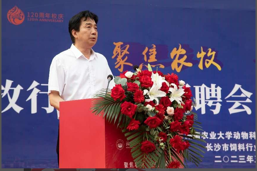 陈光辉副校长致辞指出,德赢vwin官方入口以“根植湖南,服务三农”为办学价值追求,有着深厚的“三农”情怀。长期以来,充分发挥教学、科研、技术优势,坚持走产、学、研相结合的办学特色之路,与一大批社会知名企业建立了稳固的校企合作关系,推动了湖南农业产业高质量发展。新时期,学校将发挥学科优势、技术优势、人才优势,-聚合产业、企业资源在服务湖南畜牧业高水平建设中彰显新担当,为“三高四新”战略落实和现代化新湖南建设做出新贡献。