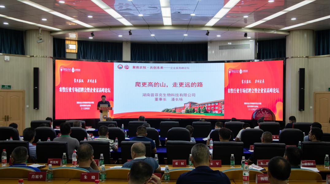 企业家高峰论坛由长沙饲料行业商会副会长兰大万主持,湖南普菲克生物科技有限公司董事长潘长咏、湖南湘佳牧业股份有限公司副总裁何业春、湖南宝东农牧科技股份有限公司总经理潘朝阳、长沙新起点生物科技有限公司董事长文志强、湖南楚沩香农牧股份有限公司董事长曾青华、湖南优久农牧有限公司董事长苏海燕分别作交流分享聚焦农牧行业创新发展前沿动态,盘点产业链现状,展望农牧业未来,围绕创新链、产业链与人才链,为行业高标准发展畅所欲言、献计献策。