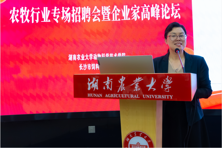 蒋政云表示,本次活动是搭建学校、企业互动与沟通的桥梁和纽带,使企业家与青年人才能够面对面、零距离交流,实现人才供需双向奔赴和双向选择。他鼓励青年学子学以致用,投身畜牧行业发展,助力协同创新打造中国饲料行业长沙高地,合作共赢助力国家乡村振兴战略工程”一为新时代中国农业、中国农村、中国农民的高质量发展,做出属于湖南农大人的新的更大贡献。