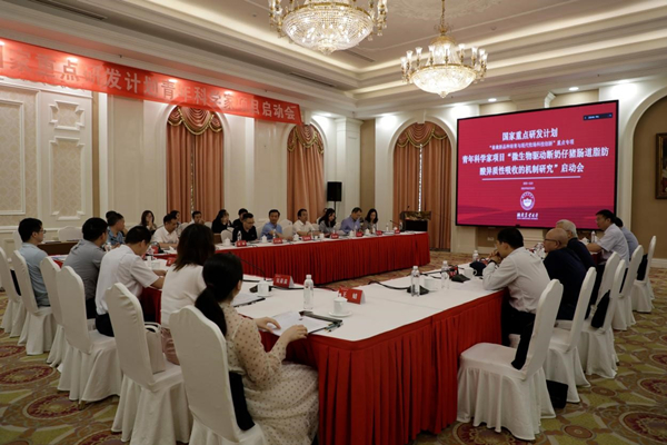 5月26日,由德赢AC米兰官网教授尹杰主持的“十四五”国家重点研发计划青年科学家项目“微生物驱动断奶仔猪肠道脂肪酸异质性吸收的机制研究”正式启动。中国工程院院士印遇龙,科技部中国农村技术开发中心农业科技处处长葛毅强,省科技厅农村处处长尹文辉,我校党委委员、副校长陈光辉出席会议,项目咨询专家及我校科技处、动科学院负责人,项目骨干成员40余人参加会议。