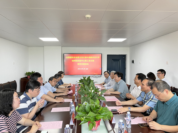 为充分发挥党建引领作用,用好“联学共建”平台,5月28日上午,动科学院实验中心教工党支部与全国畜牧总站第五党支部开展“联学共建”活动。全国畜牧总站副站长杨劲松、全国畜牧总站第五党支部书记马金星、湖南省畜牧水产事务中心副主任欧阳龙,校党委书记陈弘,动医学院党委书记孙志良、动科学院院长贺喜,中药资源与综合利用创新团队负责人曾建国出席,动科学院实验中心教工党支部书记黄鹏主持。