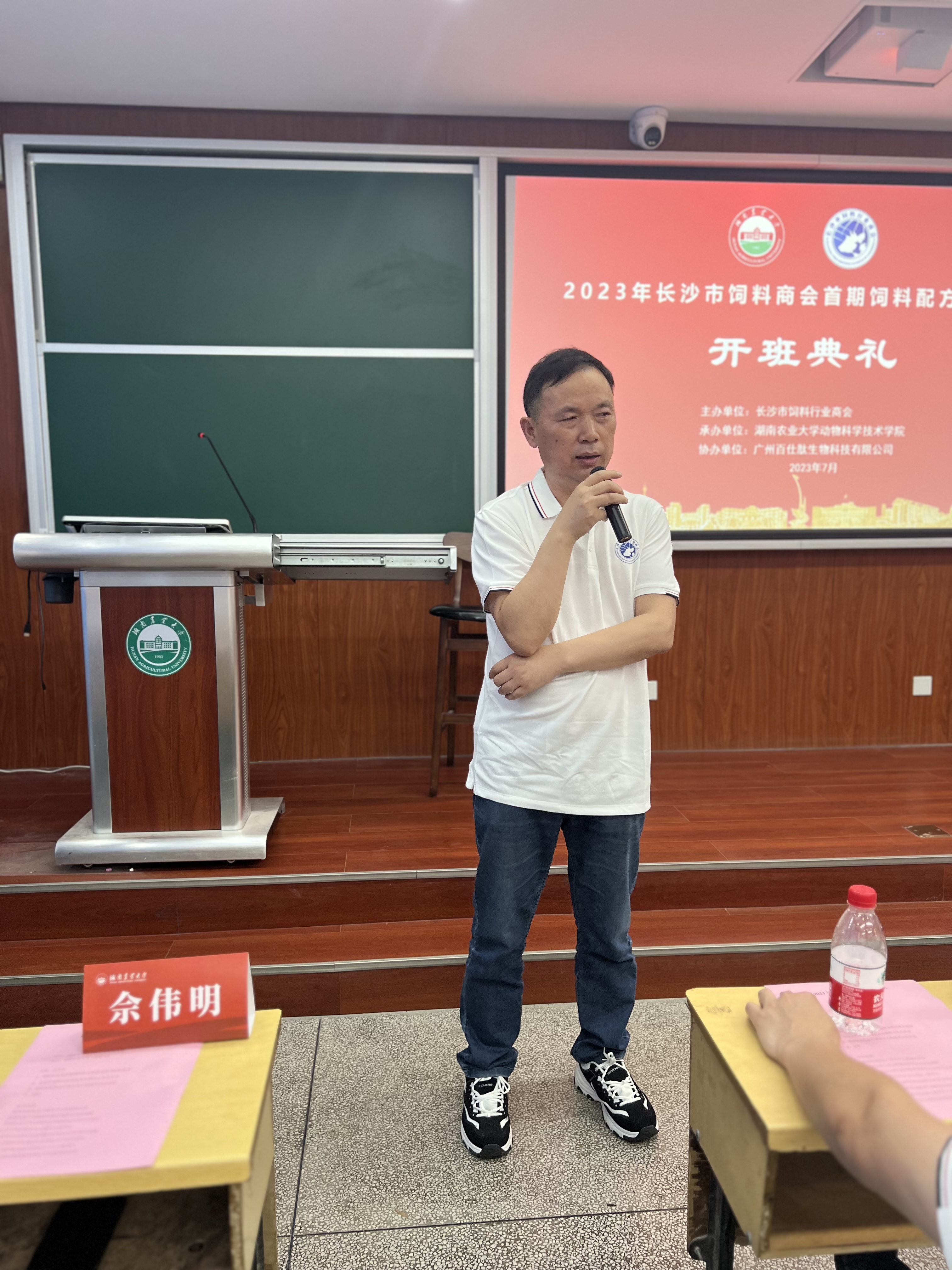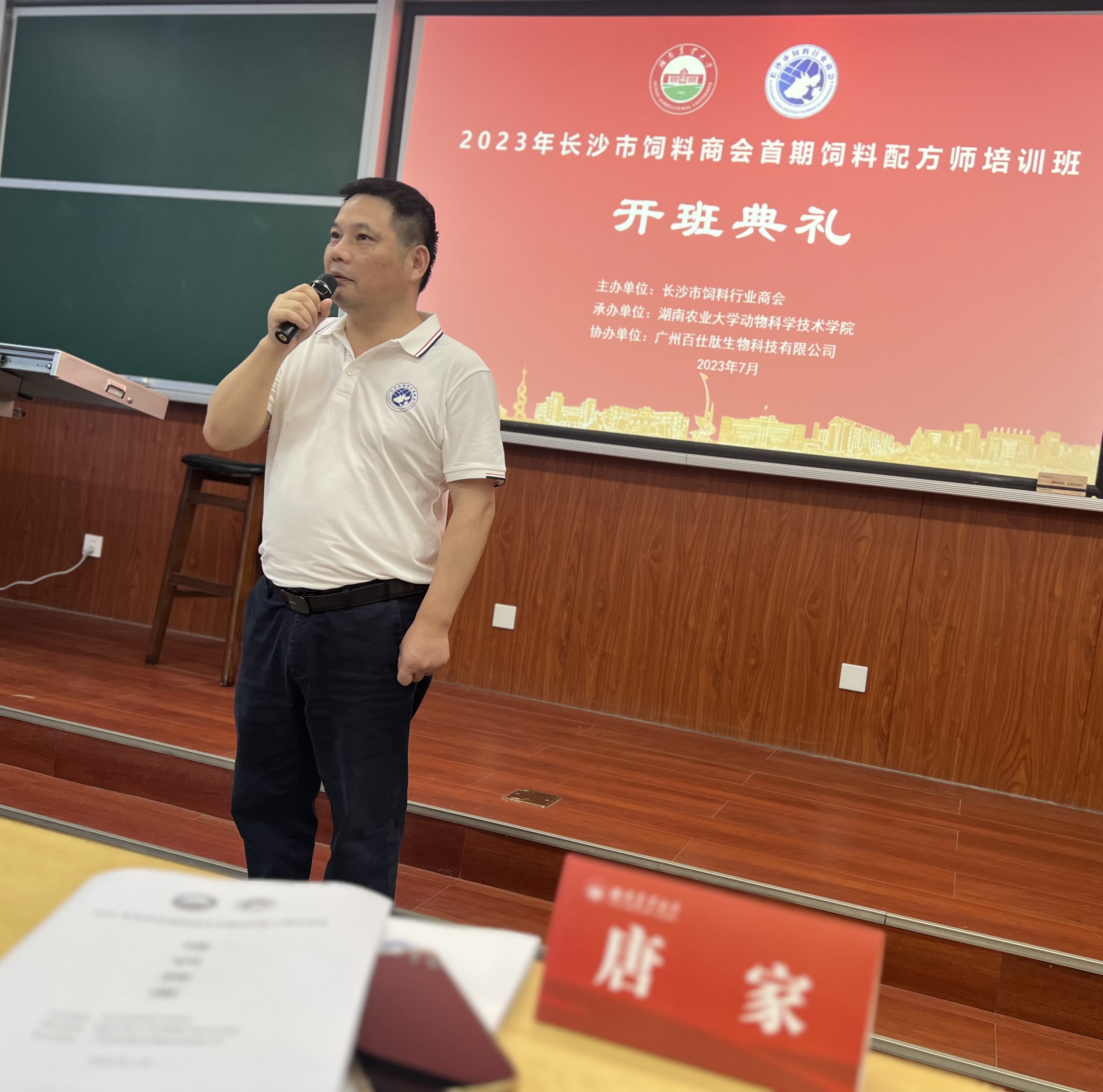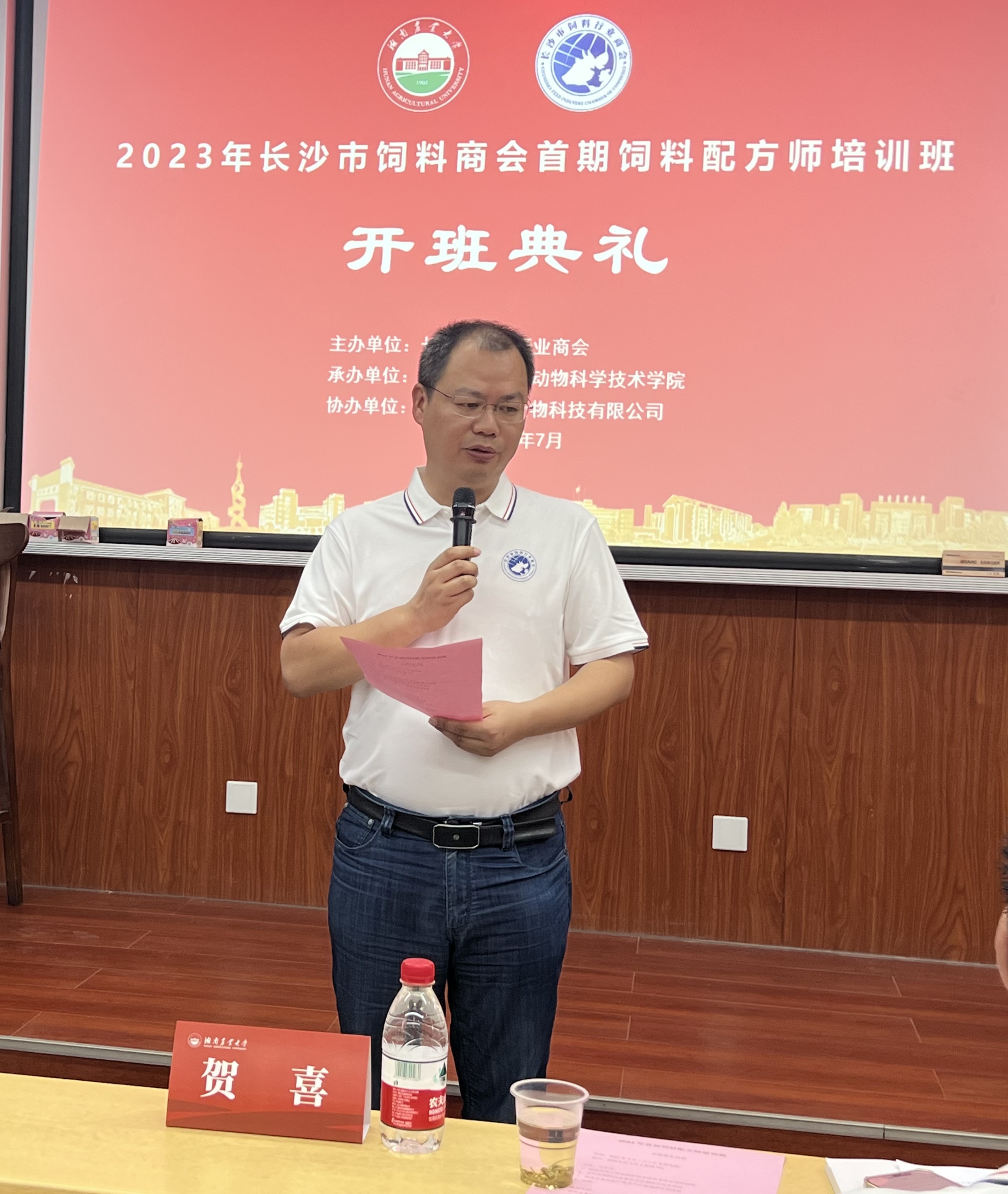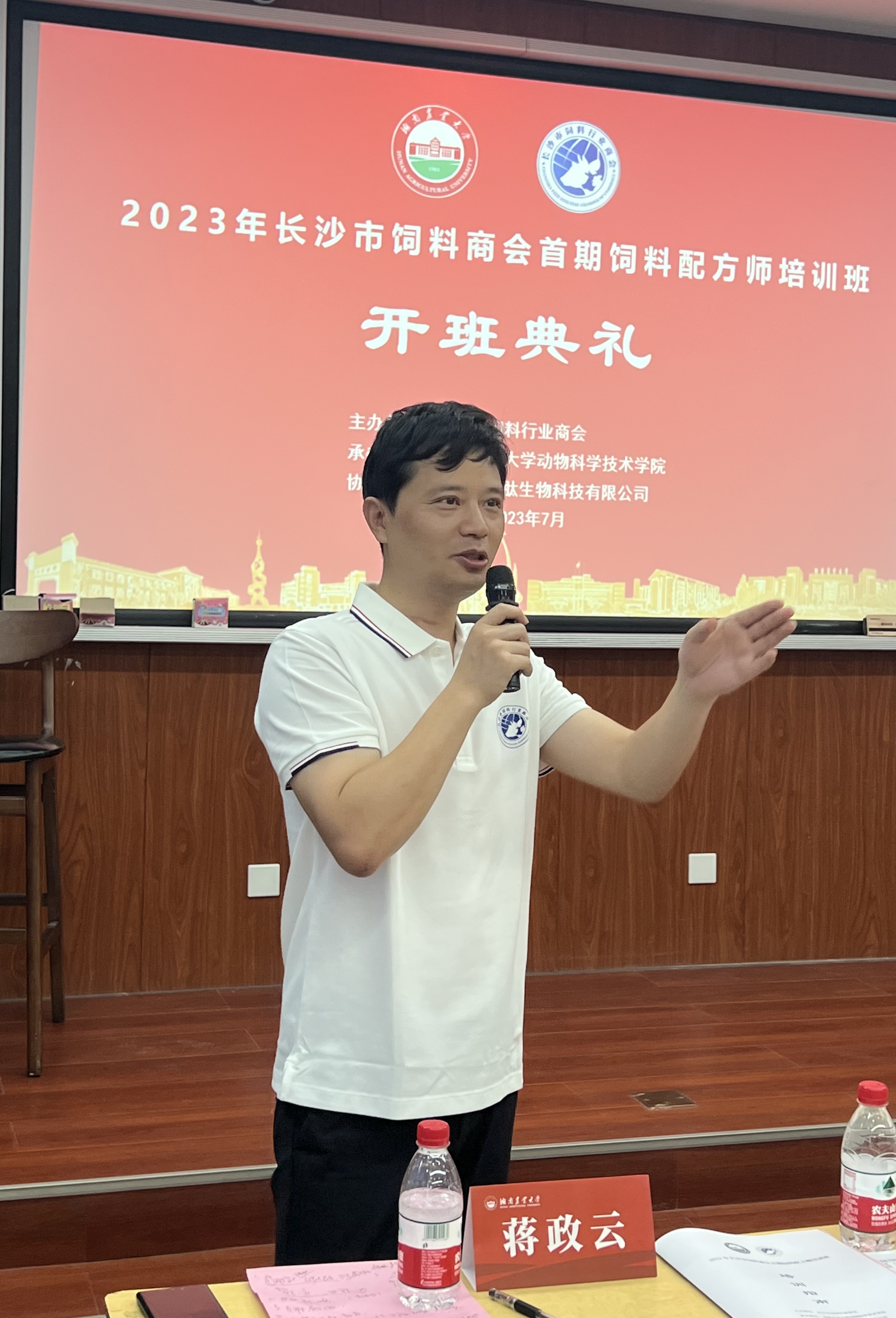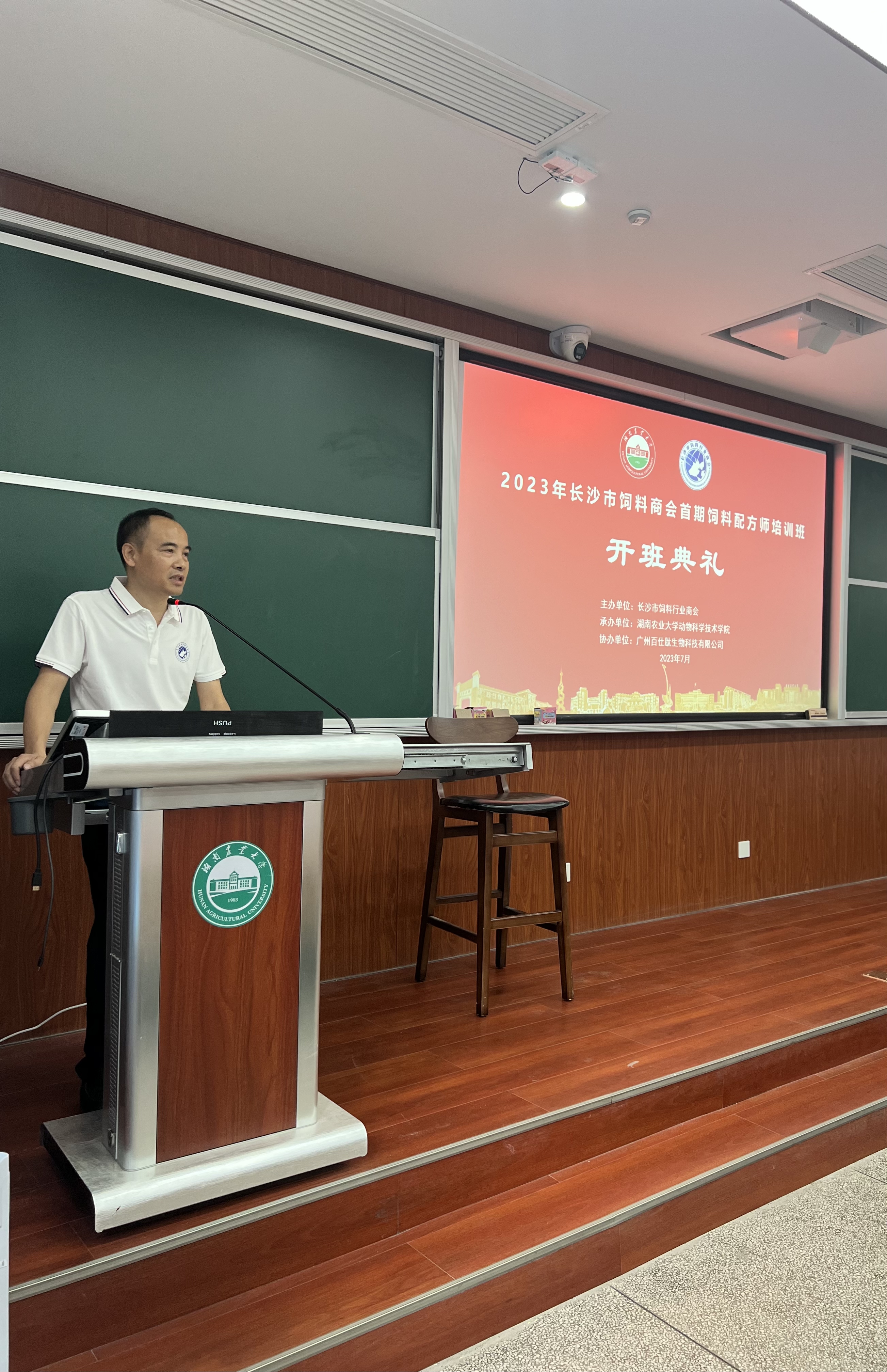 2023年7月7日,由长沙市饲料商会主办、德赢AC米兰官网承办、广州百仕肽生物科技有限公司与湖南家禽产业技术体系协办的首期饲料配方师培训班在德赢vwin官方入口成功召开。10余名讲师和嘉宾,长沙绿叶生物科技有限公司、湖南农大追求饲料科技有限公司、湖南华佑生物科技有限公司等17家企业的40多名企业家和技术精英参加了本次培训。