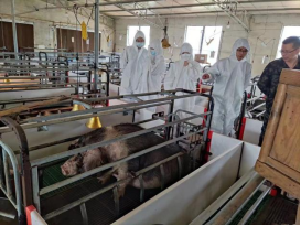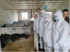 在宁乡花猪保护中心,博士团成员通过实时监控等现代科技技术对宁乡花猪的养殖状况进行观察和记录。何俊教授向相关负责人讲述了宁乡花猪精液的收集与保存的关键技术和注意事项,并针对以保种场为核心分级分层培育宁乡花猪扩繁场和扩繁户等方面进行了交流讨论。