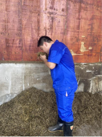团队成员们进入牧场后,先后进行了干草感官评定、甘草评估、精料评估、青贮饲料的感官评估、青贮饲料的贮存情况、料槽评估。大家针对牛舍的饮水、空气、休息以及空间进行了评估,同时观察了饮水槽情况。使队员进一步了解牧场奶牛卫生状况。