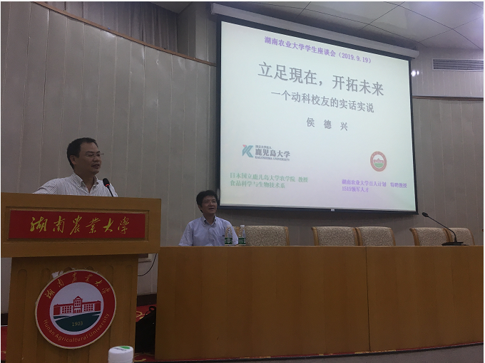 9月19日,德赢AC米兰官网在生科楼国际会议厅举行了学术讲座。此次讲座的主题是“立足现实,开拓未来——一个农大校友的实话实说”。日本国立鹿儿岛大学侯德兴教授受邀担任主讲人,全体动科院研究生参加此次讲座。